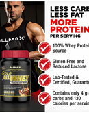 - Reduced Lactose and Increased Protein Per Serving: Gold ALLWHEY features reduced the lactose so it’s easier on the stomach. Other protein powders on the market use less expensive protein grades that contain low yields of protein and include higher levels of lactose and fats, but GOLD ALLWHEY boasts a whopping 80% yield – 24g of premium whey protein in every 32 g serving.